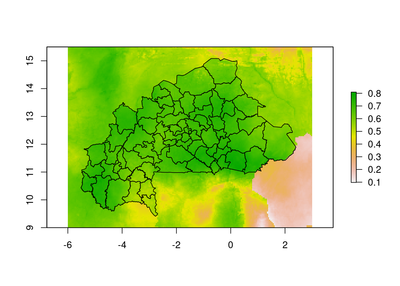 In this page, we demonstrate how to extract values from maps using R. Often we have maps showing values for each pixels, for example, ITN…